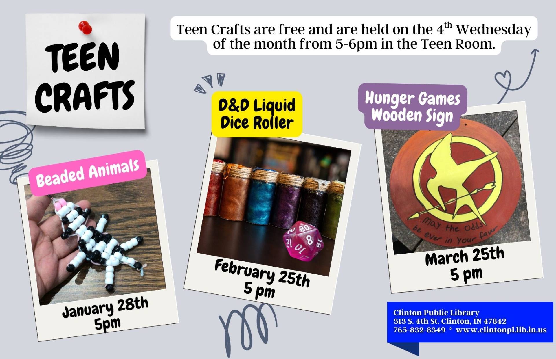 The Teen Department features a wide array of learning, reading, and visual materials. YA Novels, Graphic Novels, Manga, Non-Fiction, Biographies, Magazines, and Games. Looking for something specific? Click the Link to search our Card Catalog! Would like to recommend something? CLICK HERE!! or Email CPL at cpl@clintonpl.lib.in.us